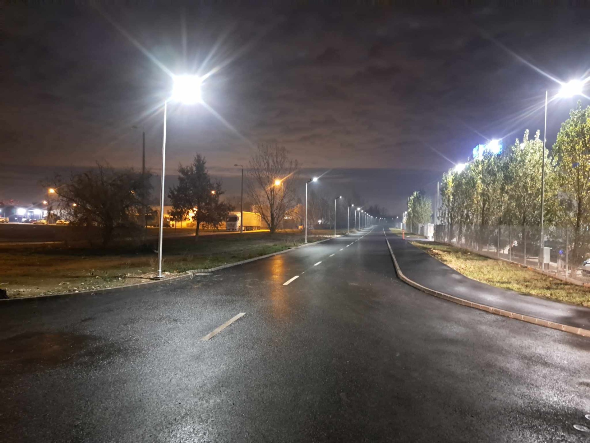 Érd, Sulák utcában újonnan épült ipari parban létesített közvilágítást adtunk át megrendelőnk részére. 53 db közvilágítási napelemes kandeláber több mint 1,5 km útszakaszon!
